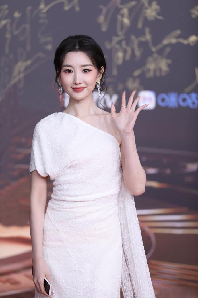 白鹿特意染了新发色,显得更加元气满满。她选择了一袭白色抹胸礼服,搭配水晶发饰,造型复古。然而,这一造型并不太契合她的气质,抹胸设计不仅未能凸显身材线条优势,反而暴露了赘肉。头上的发箍过于醒目,与整体造型格格不入,还压了个人气场,看上去有些显老。